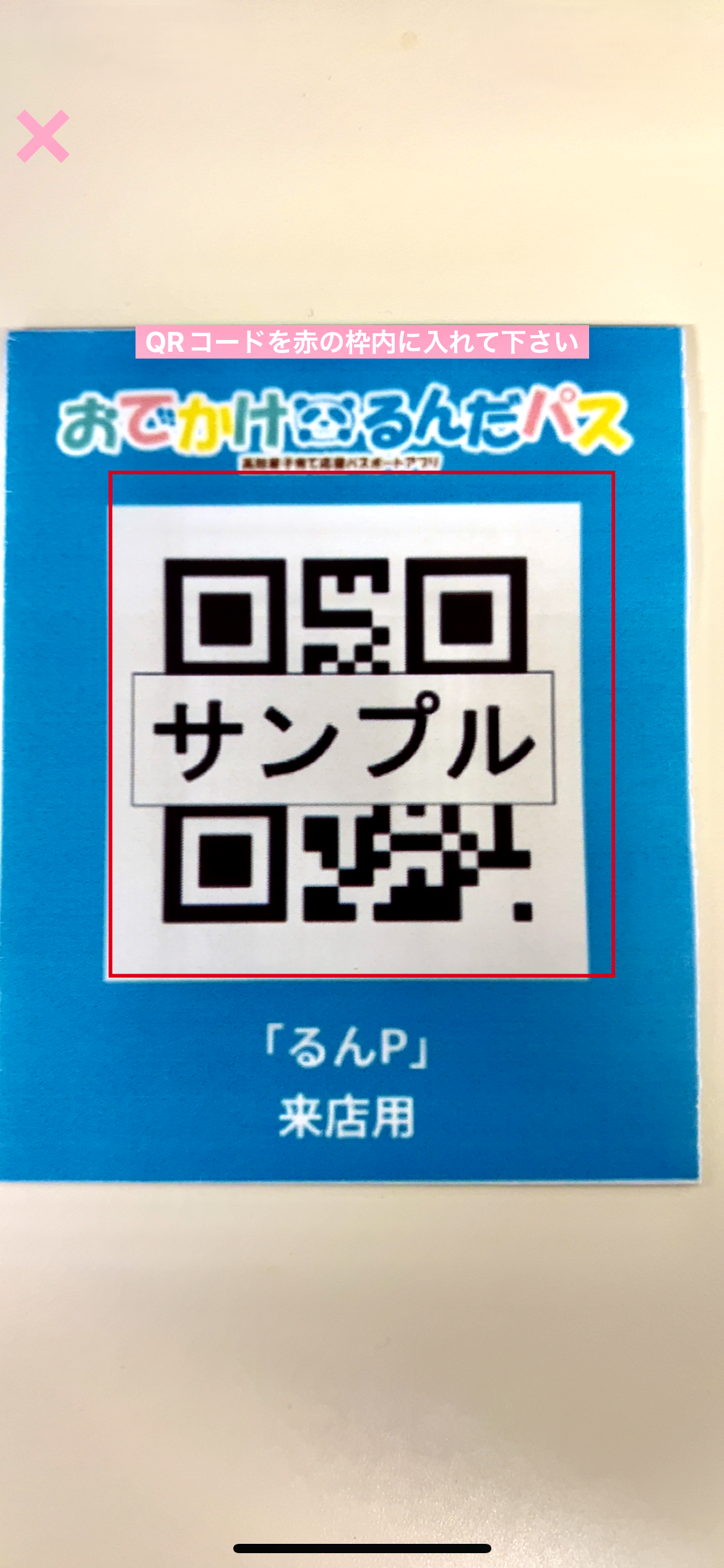 QRコード読み取り用のカメラが起動しますので、店舗に設置されているQRコードを読み取ってください。