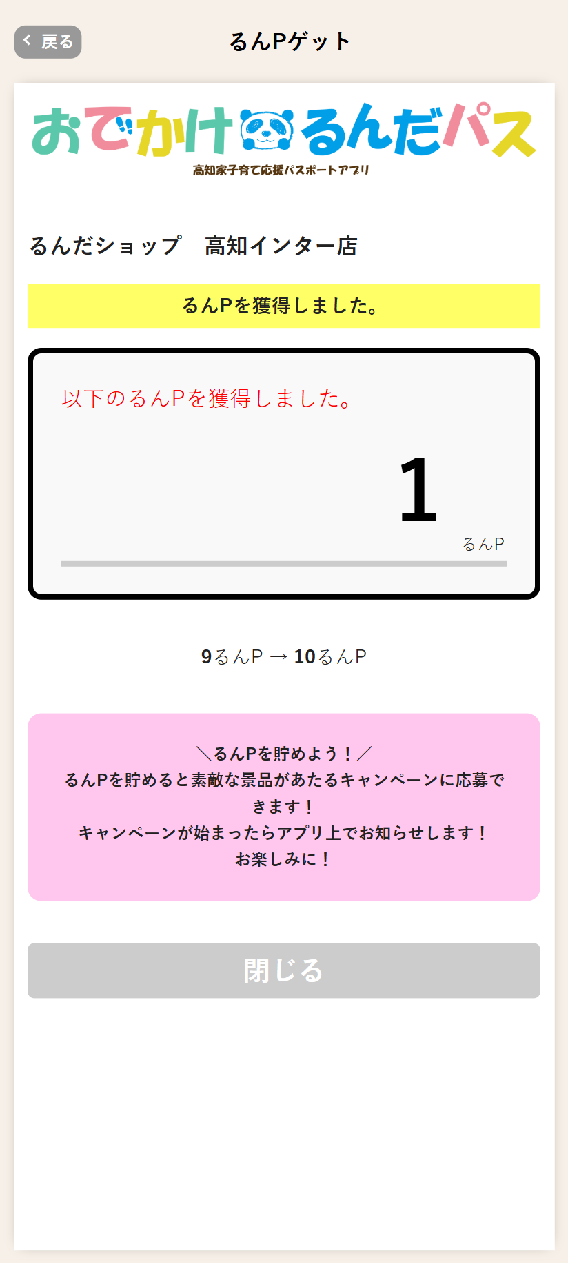 読み取りが成功すると、るんPを獲得できます。